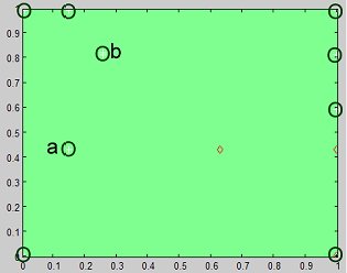 Only Nine Massacre Sites for 5000 dweebs. "Site a" is an initialization kill where a bully was created on top of a dweeb. "Site b" is a kill where two bullies cooperated and is the only in-field kill. All others are single bully kills at corners or sides